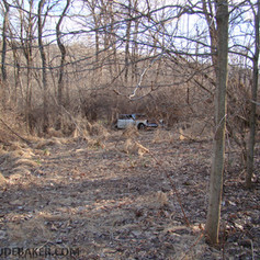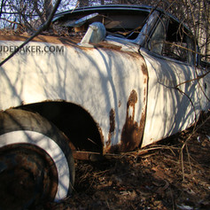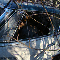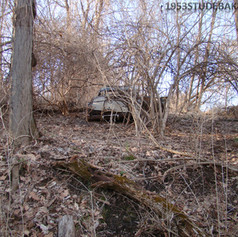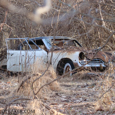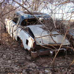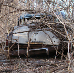 The lot is off the beaten path and it was/is being farmed by a friend. It has a thick hedgerow on the western part and a thick wooded area on the southern part of the lot. As I walked to the point where the hedge row and wooded area meet I noticed a reflection of light from an otherwise brown-washed environment. Walking towards the reflection, I realized that there was a car hidden deep within the wooded area. It was obvious that it was put there decades earlier. If I had been there a few weeks later it wouldn't have been visible through the vegetation that would be present.