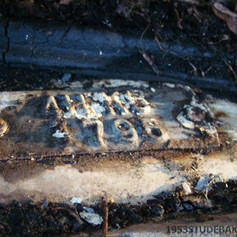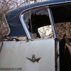 I had no idea what make or model of car I was looking at because I'm not very good at vehicle identification. A Mercedes emblem on the hood became visible as I approached the car so I figured it was an older Mercedes from the 60s. Even though the car was stuck in the ground and shot full of holes it still looked like an especially stylish vehicle. I subsequently noticed a Studebaker emblem on the back of the car. I took several pictures and noticed more Mercedes and Studebaker emblems. I rushed home to interact with the best investigative tool, Google.