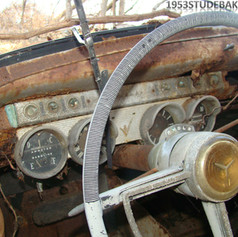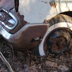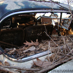 I didn't have any actual data on the car, especially since the driver's door was stuck in the closed position thereby hindering the access to the door jamb identification plate. The search eventually narrowed down to a 1953 or 54 Studebaker via a lot of searching through Google images. A few clicks later brought me to the Studebaker Drivers Club forums to get an exact identification of the car. After posting a few pictures it was identified correctly as an early version of the 1953 Studebaker Commander Hardtop, aka Starliner.